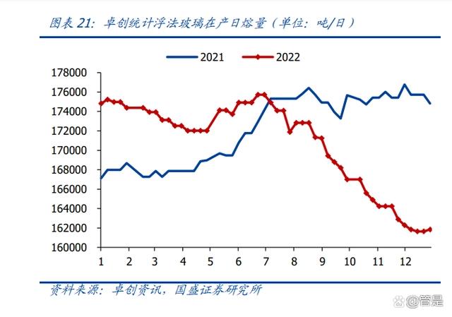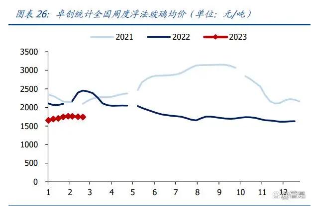 展望 2023 年,厂商冷修、点火节奏多采取随行就市策略,全年产能弹性较大。根据隆众资讯统计,2023 年计划冷修产线合计日熔量 8910T/D,计划新点火产线合计日熔量 10980T/D,前期冷修计划复产产线合计日熔量 9950T/D。从我们近期草根调研反馈来看,当前二三线玻璃厂仍处于亏损状态,且微亏现金流,但考虑到一季度为传统淡季,厂家对未来需求恢复、成本下降仍抱有信心,因此现阶段冷修的意愿不强,未来点火、复产节奏主要取决于行业利润恢复情况,若需求启动、行业利润修复,仍有较多产线可迅速点火、复产。整体来看,预计 2023 年 1-2 月为全年产能低点,产能的供给弹性较大。