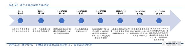 国内二强玻璃已有突破,产品抗跌落和抗划伤性向康宁比肩。康宁、肖特、电气硝子、旭硝子等起步较早,产品已迭代多代,二步强化工艺较为成熟,国内企业目前两步强化法已取得突破,彩虹集团联合深圳东丽华于 2016 年推出国内款商用锂铝玻璃凯丽 6 (GK6),力学性能比高铝玻璃提高 30%以上,抗弯强度提高 20%以上,可对标康宁 GG5 系列产品,随后南玻、旭虹光电、旗滨集团等企业相继突破二强工艺,南玻 KK6、旭虹光电 Panda-1681 以及旗滨集团旗鲨 6 系列产品的 CS、DOL 指标已经可与康宁 GG6 玻璃比肩,产品抗跌落和抗划伤性大幅提升。