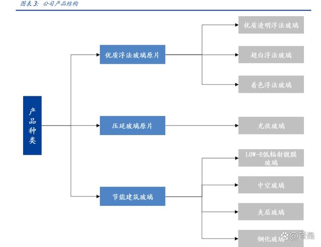 产品和业务结构:公司的产品可分为浮法玻璃原片、压延玻璃原片以及节能建筑玻璃,其中浮法玻璃主要为优质透明浮法玻璃、超白浮法玻璃、着色浮法玻璃等,压延玻璃原片主要为光伏玻璃,节能玻璃主要为 Low-E 低辐射镀膜玻璃、中空玻璃、夹层玻璃、钢化玻璃等。
