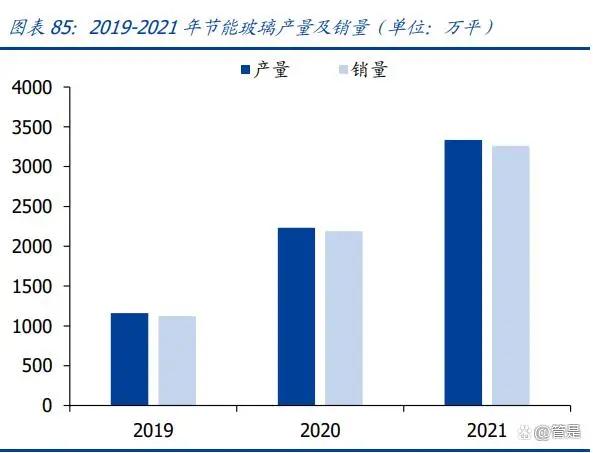 收入业绩高增长,产能爬坡后盈利能力进一步增强。公司 2021 年节能玻璃共计销售 3260 万平,实现收入 20.3 亿元,同比增长 83.2%,近三年复合增速 74.3%,毛利率 42.0%,同比提升 8.8 个百分点。从子公司来看,绍兴节能、广东节能以及湖南节能已实现净利润转正,目前马来西亚、天津、长兴基地尚处于运营初期,净利润仍为亏损,未来产能爬坡后净利率将改善。