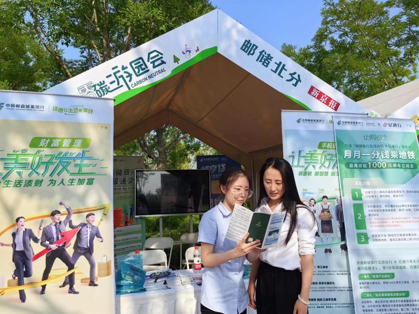 邮储银行北京分行参与“新京报零碳游园会”活动,与现场游客进行低碳科普互动。邮储银行北京分行供图