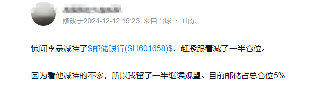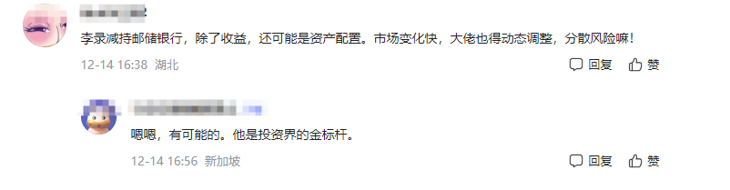 港交所披露易信息显示,李录旗下喜马拉雅资本于12月6日在场内出售2000万股邮储银行H股股份,涉及金额近9000万港元。此番减持后,喜马拉雅资本持有的邮储银行H股数量降至约11.78亿股。