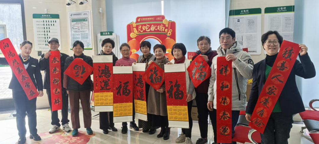春节将至,年味渐浓。中国邮政储蓄银行各地分支机构以丰富多彩的暖心服务迎新春,精心布置营业网点,挥毫泼墨写福字、送春联,传递浓浓的年味与祝福,金融护航百姓过上安心年……这个春节,邮储银行把有温度的金融服务送到千家万户,用心守护群众的幸福团圆。