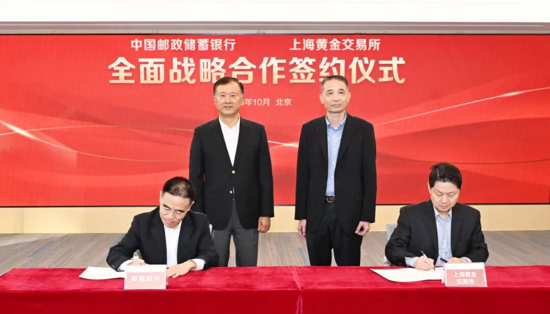 10月21日,中国邮政储蓄银行与上海黄金交易所在京签署战略合作协议。此次合作旨在深化双方在黄金市场领域的全方位合作,进一步提高金融市场服务实体经济质效,赋能黄金市场发展迈入深度协同新阶段。邮储银行行长刘建军、上海黄金交易所理事长余文建见证签约仪式,邮储银行副行长徐学明、上海黄金交易所副总裁马林分别代表双方签署合作协议。