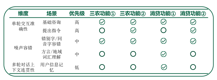 明确测试范围,建立正交矩阵:基于业务需求识别出所有关键业务(如“智能客服”、“贷款咨询”等),并将其与《“人工智能+”金融应用测试设计参考框架》中典型场景进行正交关联,形成《核心业务与典型场景正交表》。如图2所示,该表清晰地界定了测试边界,确保每个核心业务下的各项交互能力均得到验证,从源头避免测试盲区。