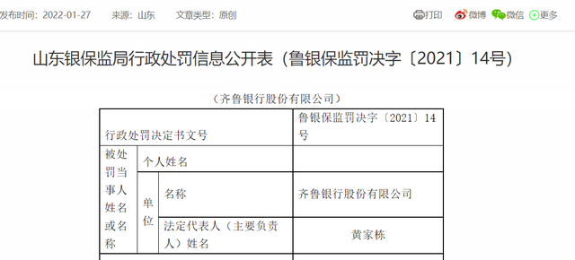 日前,山东银保监局连续发布了鲁银保监罚决字〔2021〕(笔者注:结合发布时间,应该为2022)13号、鲁银保监罚决字〔2021〕14号两个处罚决定,对于孙海燕、齐鲁银行股份有限公司(法人代表黄家栋),分别以“对机构以贷收贷方式处置不良贷款,严重违反审慎经营规则负直接责任”、“以贷收贷方式处置不良贷款,严重违反审慎经营规则”两个违法违规事实处以5万元和110万元的罚款。