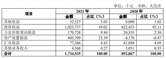 同比提高5.81个百分点,主要是资产处置收益增加。其中,投资收益为10.24亿元,上年同期为8.22亿元。