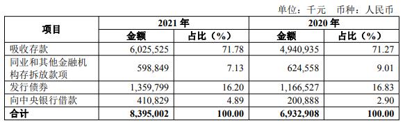 截至2021年末,该行负债总额 4008.09 亿元,较上年末增长 20.39%,主要是由于吸收存款、向中央银行借款等增加。