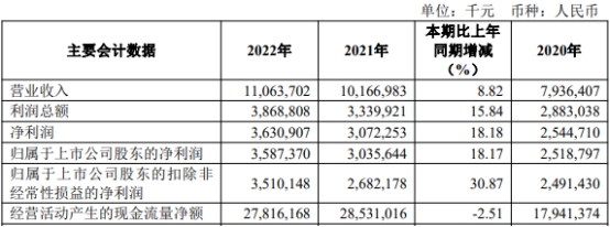 中国经济网北京4月28日讯齐鲁银行(601665.SH)昨日晚间发布了2022年年度报告。2022年,齐鲁银行实现营业收入110.64亿元,同比增长8.82%;实现净利润36.31亿元,同比增长18.18%;实现归属于上市公司股东的净利润35.87亿元,同比增长18.17%;实现归属于上市公司股东的扣除非经常性损益的净利润35.10亿元,同比增长30.87%;经营活动产生的现金流量净额为278.16亿元,同比减少2.51%。