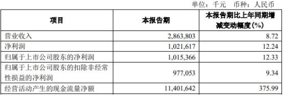 同日,齐鲁银行发布的2023年第一季度报告显示,报告期内,齐鲁银行实现营业收入28.64亿元,同比增长8.72%;实现净利润10.22亿元,同比增长12.24%;实现归属于上市公司股东的净利润10.15亿元,同比增长12.33%;实现归属于上市公司股东的扣除非经常性损益的净利润9.77亿元,同比增长9.34%;经营活动产生的现金流量净额为114.02亿元,同比增长375.99%。