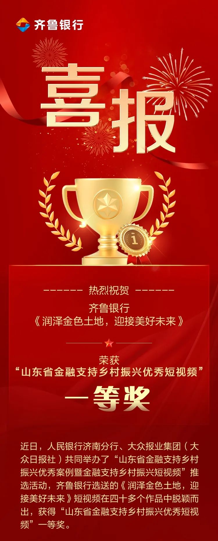齐鲁银行荣获“山东省金融支持乡村振兴优秀短视频”一等奖
