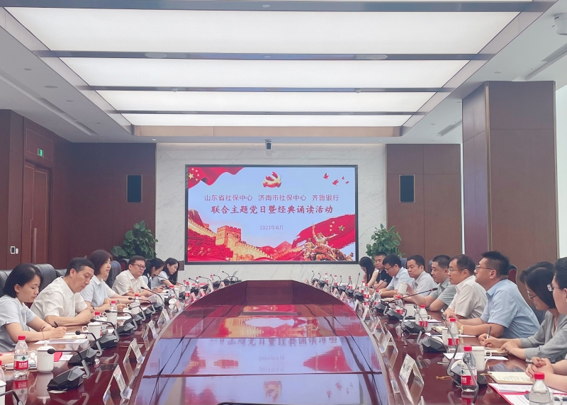 为深入学习贯彻习近平新时代中国特色社会主义思想和党的二十大精神,进一步开创社银工作新局面,6月28日上午,山东省社保中心、济南市社保中心到齐鲁银行开展联合主题党日暨经典诵读活动。省社保中心副主任朱传强,市人社局党组成员、市社保中心主任张彦,齐鲁银行副行长葛萍、陶文喆参加活动。