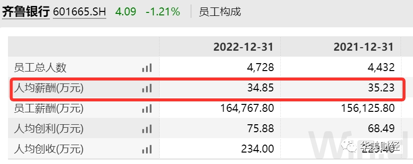 该行去年末员工总数大约4700人,人均创利约76万元,人均薪酬近35万元,和2021年相比,略有减少。和同省的青岛银行人均薪酬40.5万元相比,稍有不足,但整体上属于较高水平。