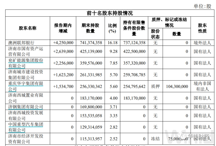 齐鲁银行股权较为分散,无控股股东和实际控制人,第一大股东是澳洲联邦银行,持股16.18%,并提名布若非为非执行董事。济南市国有资产运营有限公司、济南城建集团、济南市经济开发投资有限公司互为一致行动人,合计持股比例17.5%,关联方还包括济南城投集团、山东乐耕城市建设开发有限公司等公司。