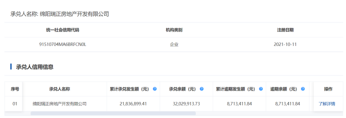 华宇集团几乎全资持股的绵阳瑞正房地产开发有限公司截止到6月底商票逾期余额871.3万元;