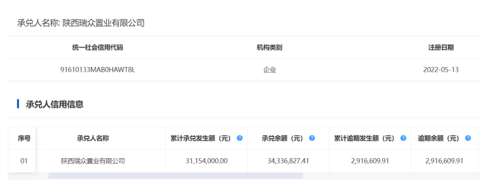 华宇集团几乎全资持股的陕西瑞众置业有限公司在6月底商票逾期余额2917万元;