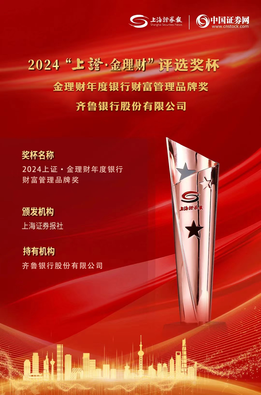 2024年12月21日,上证财富管理论坛、“上证·金理财”评选颁奖典礼在沪举行,我行荣获2024年度银行财富管理品牌奖。这是对我行致力于为客户提供高品质的财富管理服务、积极践行“金融为民”服务理念的认可。