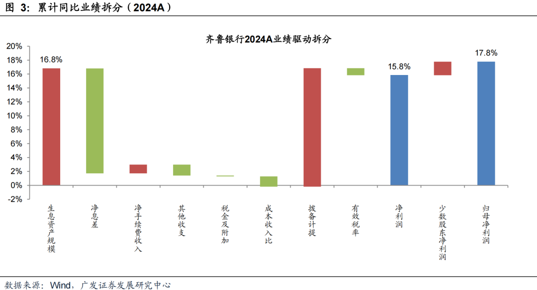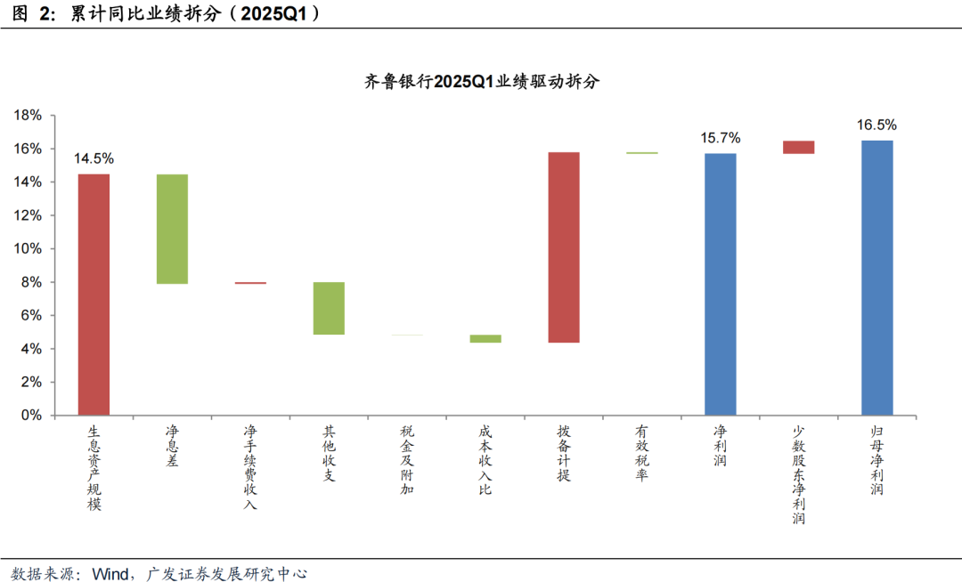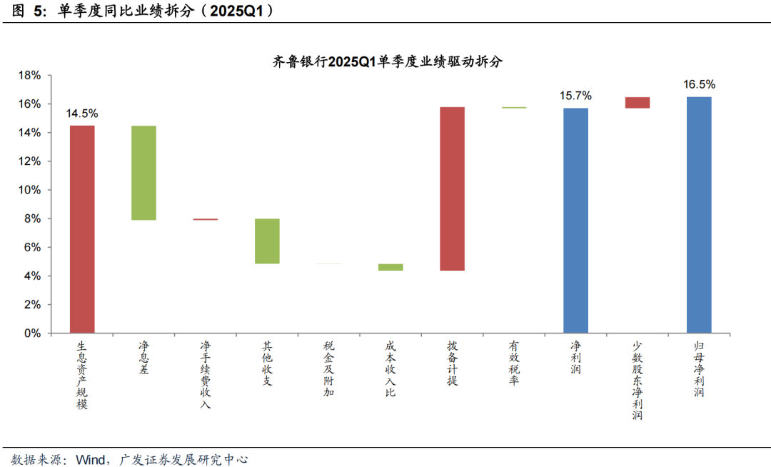 齐鲁银行发布2024年报和2025年一季度报告,24A营收、PPOP、归母利润同比增速分别为4.6%、-0.2%、17.8%;25Q1营收、PPOP、归母利润同比增速分别为4.7%、4.4%、16.5%。24A累计业绩驱动来看,规模扩张、拨备计提减少为主要正贡献,净息差收窄、其他收支、成本收入比等因素形成一定拖累,公司业绩继续保持两位数高增。