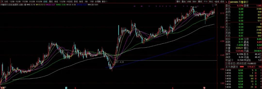 只要是金子早晚都会“发光”、引人关注,齐鲁银行的这份“成绩单”还是逐渐引起了场中投资者的追捧。今年截至5月23日收盘,据鑫网通达信口径该行股价收于6.55元/股、前复权涨幅已高达19.96%,远超银行板块(880471)的7.26%。