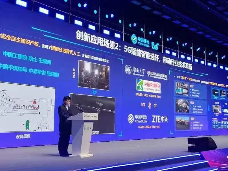 中国移动特邀中国平煤神马控股集团平煤股份十矿参加此次大会。论坛中,平煤股份十矿首席技师郭晓广作了题为《连接地上地下,护航煤矿新安全》的主旨演讲。由平顶山移动公司联合平煤股份十矿打造的全国首例超千米深井矿5G 智慧矿山应用项目,在第四届“5G 绽放杯”中获得全国一等奖。在中国移动5G加持下,中国平煤神马实现了全国首个高瓦斯、超千米5G智能化掘进场景,同时针对矿井地下开采具有高瓦斯、高地温、高地压、高粉尘等特点,实现了井下高清视频通话、回传、监控等应用场景,助力矿山安全、绿色、智能、高效发展,在煤炭行业具有很强的示范引领作用,受到参会各级领导和业界专家的一致好评。