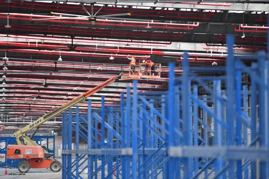 项目团队将所有工程图纸、专业管线汇成一张总图,编制交叉作业的大联合建设方案,并将建设总平面“化整为零”,分为面积相近、难度相当的4个区域,各区域进一步“包产到户”,明确“责任田”,高峰时,超过2000名工人同时到场作业。