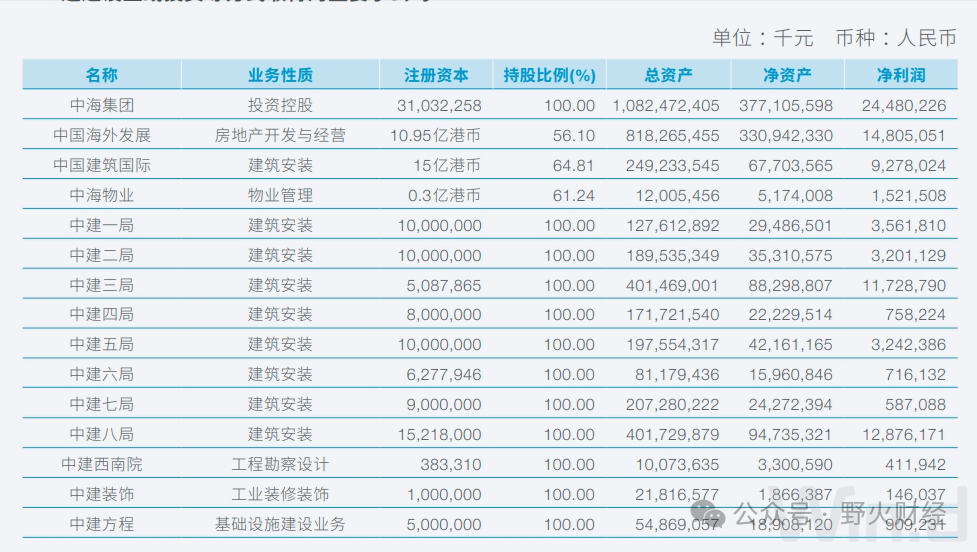 其他超过10亿元净利润的子公司还有中国建筑国际(大约93亿元),一局36亿,二局32亿元,五局32亿元,中海物业15亿元。