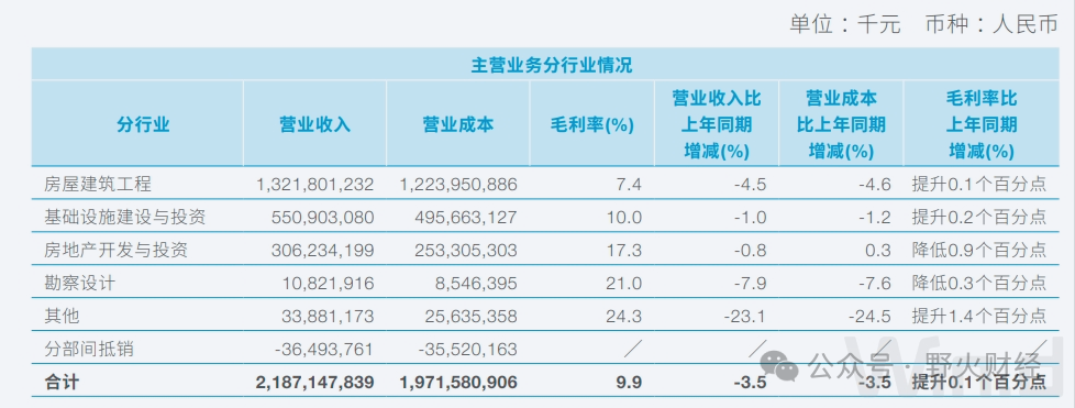 勘察设计收入108亿元,减少7.9%;其他收入339亿元,下滑超过23%。