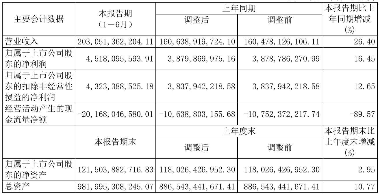8月25日,中国电建(601669)近日发布2021年半年度报告,报告期内营业收入203,051,362,204.11元,同比增加26.40%;净利4,518,095,593.91元,同比净利增加16.45%。