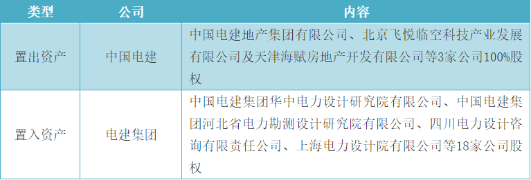 2022年1月,中国电力建设股份有限公司(以下简称“中国电建”)披露与控股股东中国电力建设集团有限公司(以下简称“电建集团”)进行资产置换事项。