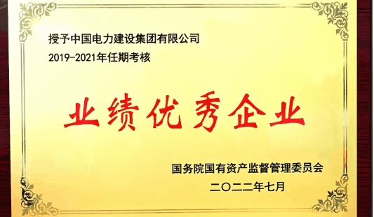1、7月17日,中国电建喜获2021年度及2019-2021年任期经营业绩考核双A级企业,并被授予2019-2021年任期“业绩优秀企业”荣誉称号。