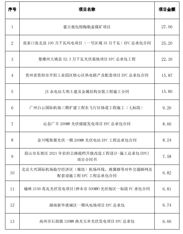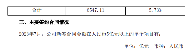 2023年7月,公司新签合同金额在人民币5亿元以上的单个项目共计18个。