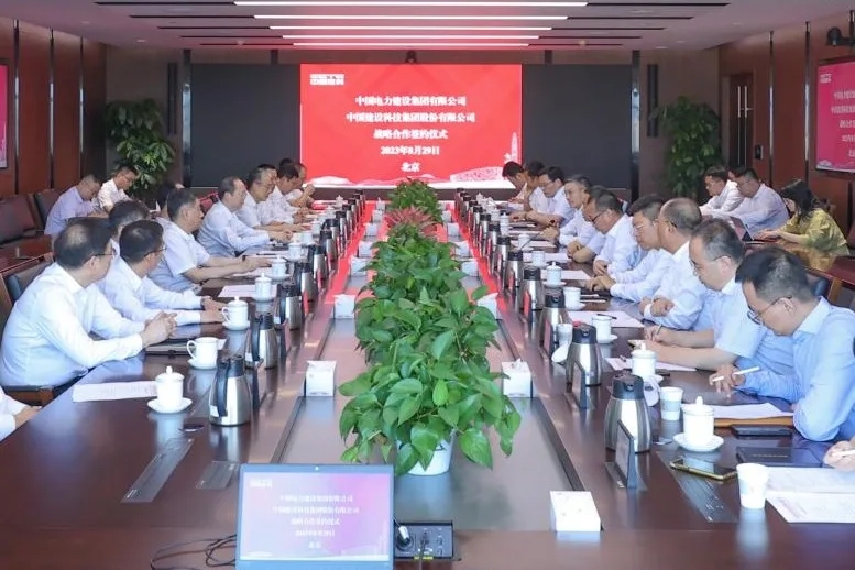 2023年8月29日,中国电建党委书记、董事长丁焰章在京与中国建科党委书记、董事长文兵举行会谈,双方围绕深化务实合作、促进共同发展进行深入交流,并共同见证双方战略合作框架协议签署。