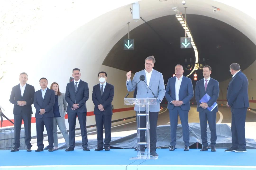 ▲塞尔维亚总统武契奇出席贝尔格莱德绕城公路奥-布项目通车仪式