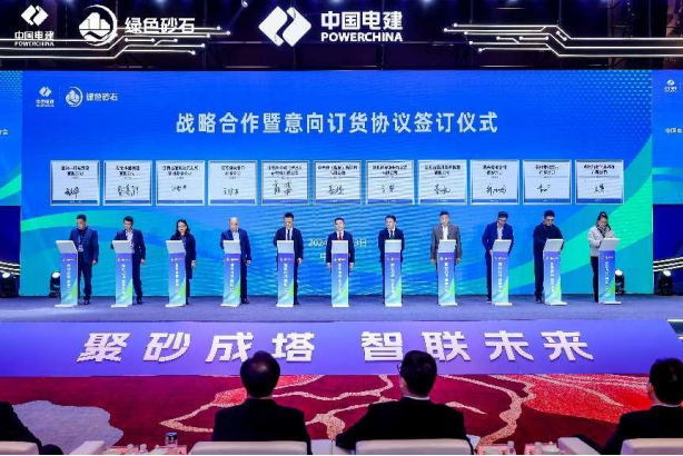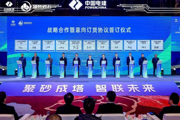 会议举行了战略合作暨意向订货协议签订仪式、蕲春项目预售协议签订仪式,中电建(蕲春)新材料有限公司、中电建安徽长九贸易有限公司、中电建长崃(浠水)新材料有限公司相关负责人作为协议甲方与24家砂石行业头部企业签订了战略合作协议。
