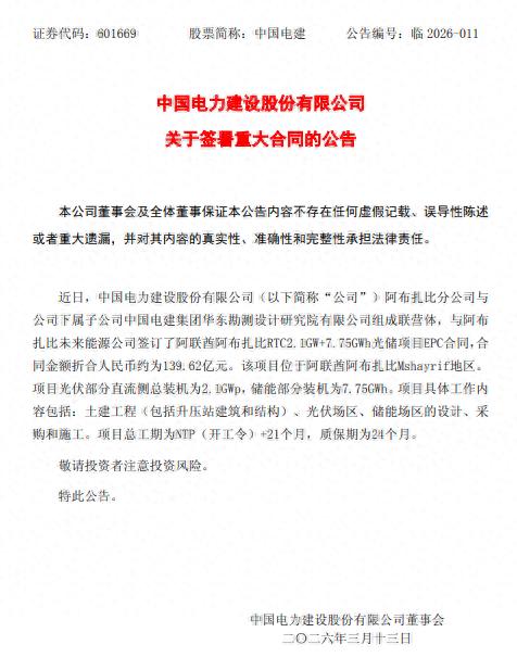 2026年3月12日,中国电建一纸公告在中东新能源圈子里炸开了锅。
