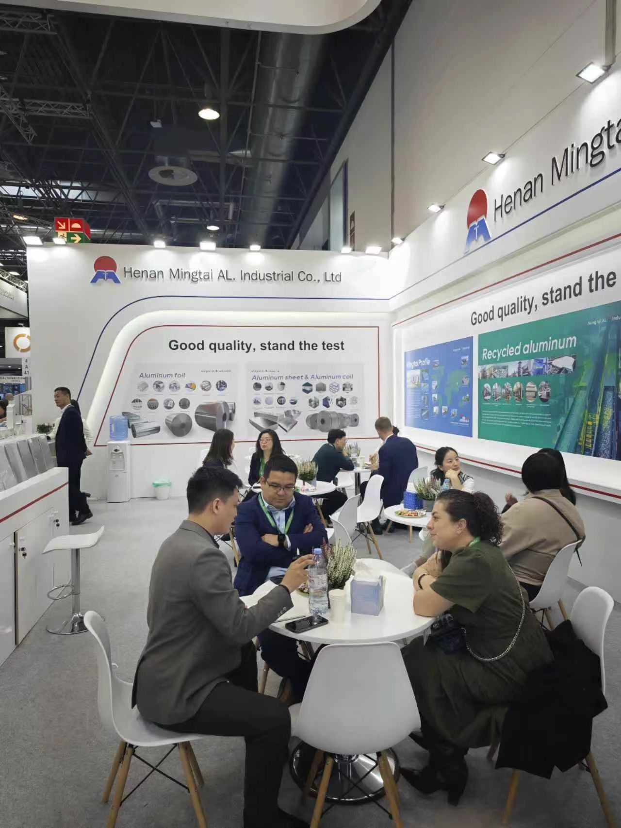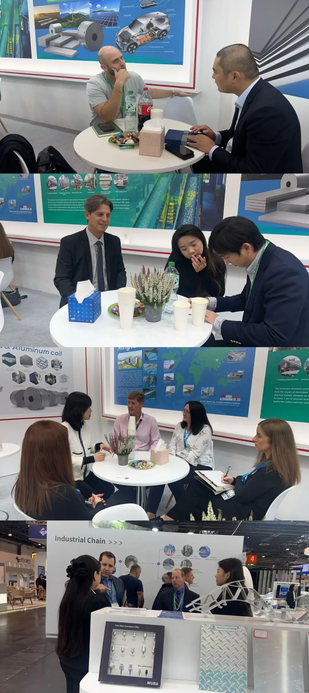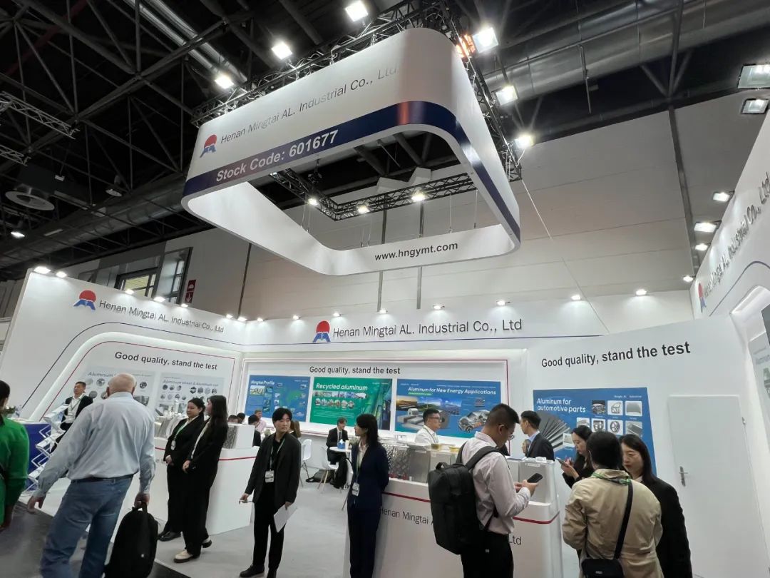 展会现场,公司销售和技术团队在展台就1-8系铝合金产品的核心功能、技术亮点及应用领域与现场观众展开了全方位的沟通、交流、分享,深入介绍了公司的先进技术及再生铝产品优势等,得到了全球客户的一致肯定。