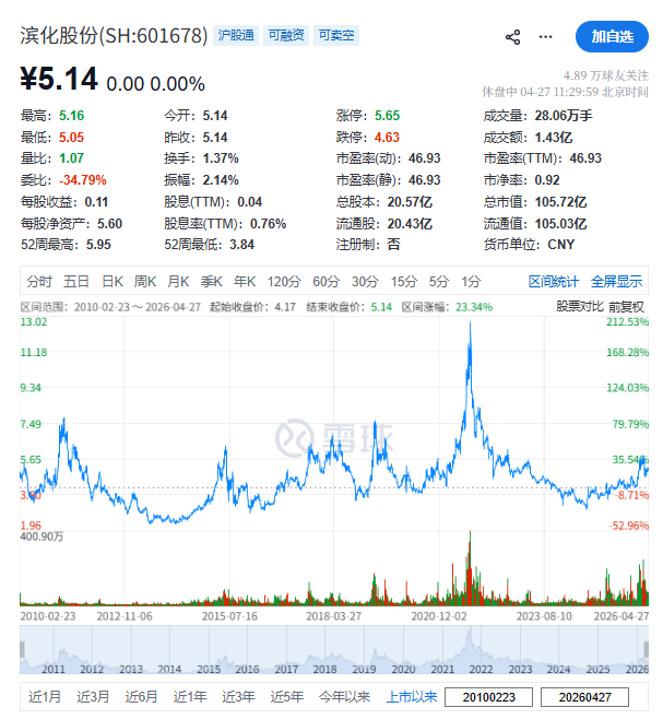 滨化股份,成立于1968年,作为一家国内领先的以科技创新与绿色低碳为核心驱动力的综合型化工集团,主要业务横跨氯碱化学品、碳三碳四、湿电子化学品三大核心板块,核心产品包括烧碱、环氧丙烷、MTBE及电子级氢氟酸等。根据弗若斯特沙利文的资料,于2025年按收入计,滨化股份是中国最大的粒状烧碱、食品级片状烧碱、三氯乙烯、四氯乙烯及氯丙烯生产商,且为第二大环氧丙烷生产商,且其市场份额分别达到约38.1%、71.9%、 36.0%、41.4%、23.8%及9.5%;滨化股份是国内少数能够制造用于先进半导体工艺的电子级氢氟酸的生产商之一。