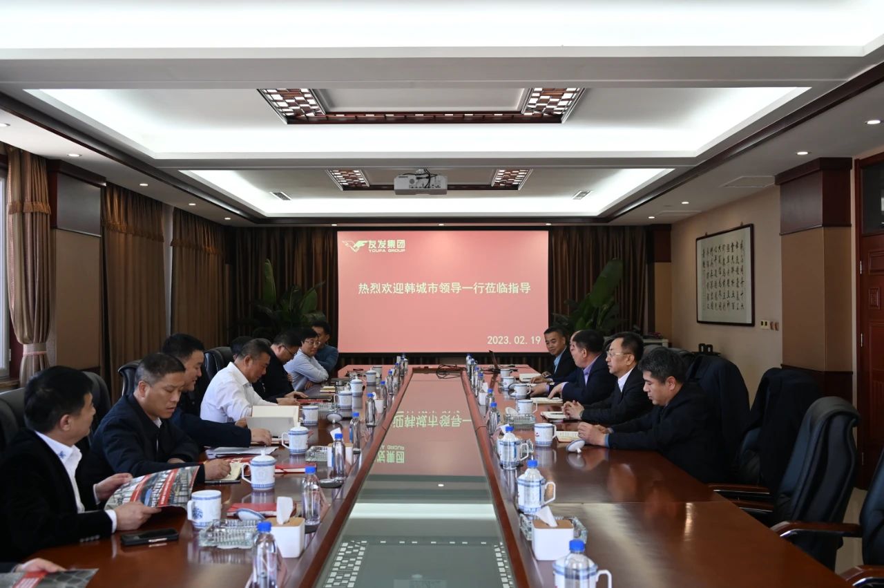 2月19日,陕西省韩城市市委副书记、市长周新强莅临友发集团走访调研,韩城市市委常委、常务副市长张景锋、副市长郭继锋、政府督查专员王根深,陕西钢铁集团有限公司总经理许晓增、龙钢公司董事长陈骁、龙钢集团董事长杨召朋、陕西上若泰基实业集团有限公司董事长刘云峰陪同调研,友发集团董事长李茂津、党委书记金东虎、副总经理徐广友、韩德恒,陕西友发钢管有限公司总经理张广志热情接待。