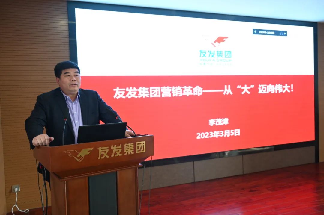 李茂津在讲话中再一次重申了营销革命的重要性,并对所有的营销人员提出了几点建议。李茂津强调,营销人员要树立正确的人生观、价值观,要有度己达人的格局,用真心服务用户;要时刻牢记员工形象代表企业形象,深入领会友发企业文化,发扬律己利他精神。