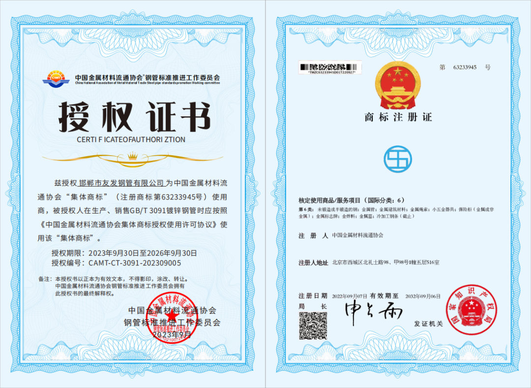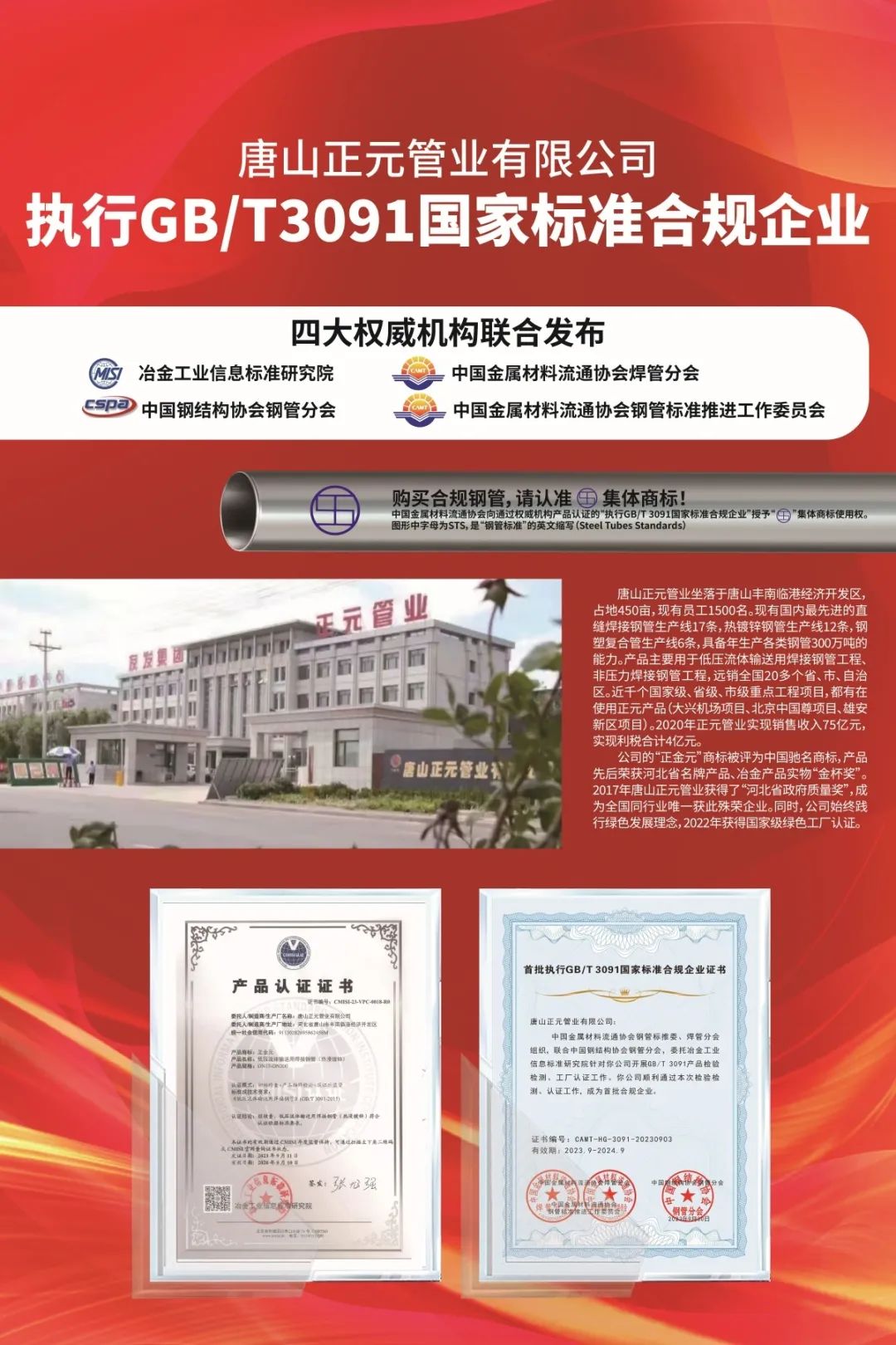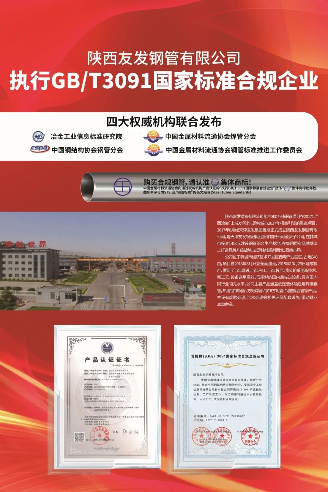 10月16日,由四大权威机构联合发布的首批入围《执行GB/T 3091国家标准合规企业名录》的14家企业中,有5家为友发集团旗下企业。分别为友发集团第一分公司、唐山正元管业、邯郸友发、陕西友发和江苏友发,涵盖友发集团全部镀锌圆管产品。