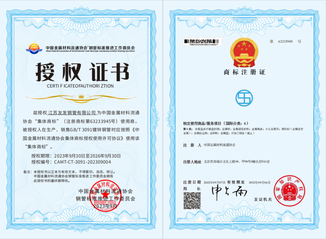 近期,中国金属材料流通协会已经向执行标准合规企业授权使用“STS(钢管标准)”集体商标。友发集团率先垂范,在集团5家分子公司相关产品上集中加装新的集体商标,充分发挥行业龙头企业的“头雁效应”,引领行业规范化、健康化高质量发展。
