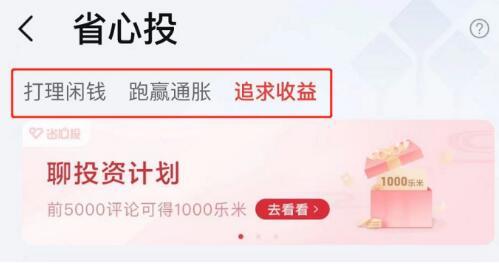 省心投用户可以根据个人的投资期限、投资目标,选择不同的投资场景,上图中的『打理闲钱』、『跑赢通胀』、『追求收益』三大场景,每个场景下有对应的多个资产配置策略。