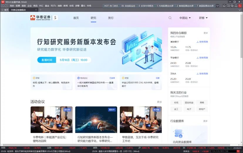 5月18日,华泰证券在其机构客户数字服务平台“行知”正式发布研究服务新版本,并同步于Wind金融终端华泰证券旗舰店上线(命令:HTZQ.M),新版研究服务通过平台化建设,将海量信息全景式集成于行知平台,为客户提供一体化的研究服务。基于120个研究子领域,汇聚了34个行业研究以及4个总量研究的研究模型及产业链图谱,为投资者提供配套的数据分析和研究工具,提升客户服务的时效性和数字化程度。