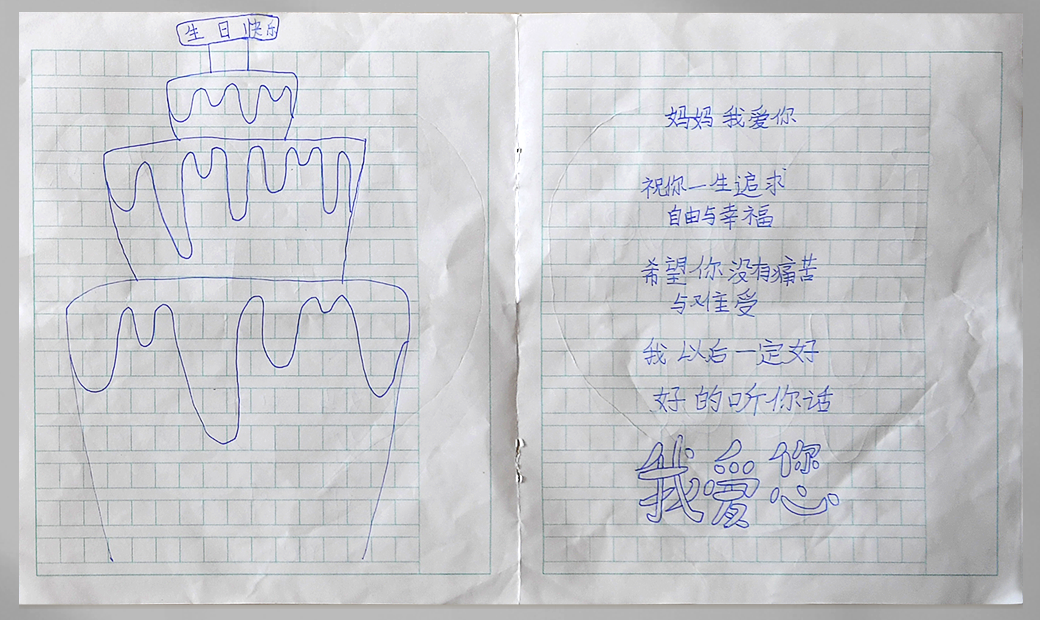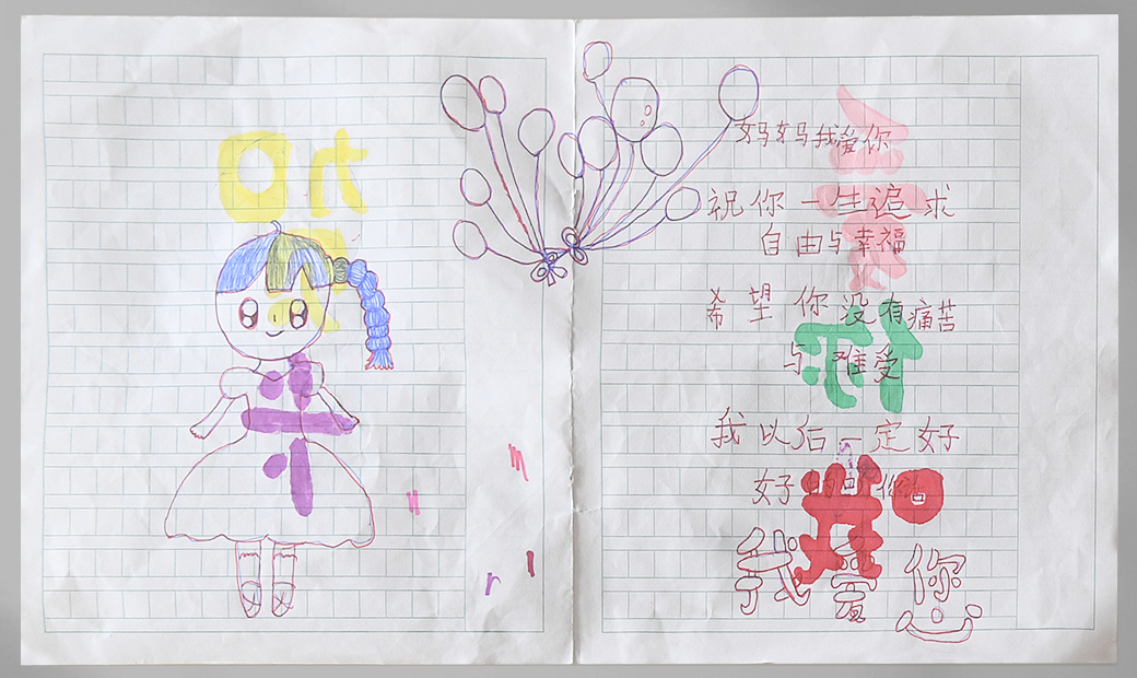 小祺给姑妈的手绘生日贺卡,她写道:“我以后一定好好听您的话,我爱您。”(滑动查看更多)