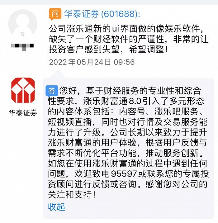 此外,多名投资者还提出华泰证券涨乐财富通APP改版后的使用体验不佳,并提出了相关建议。