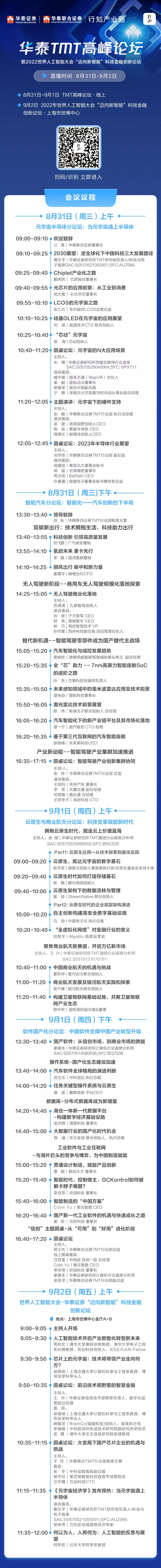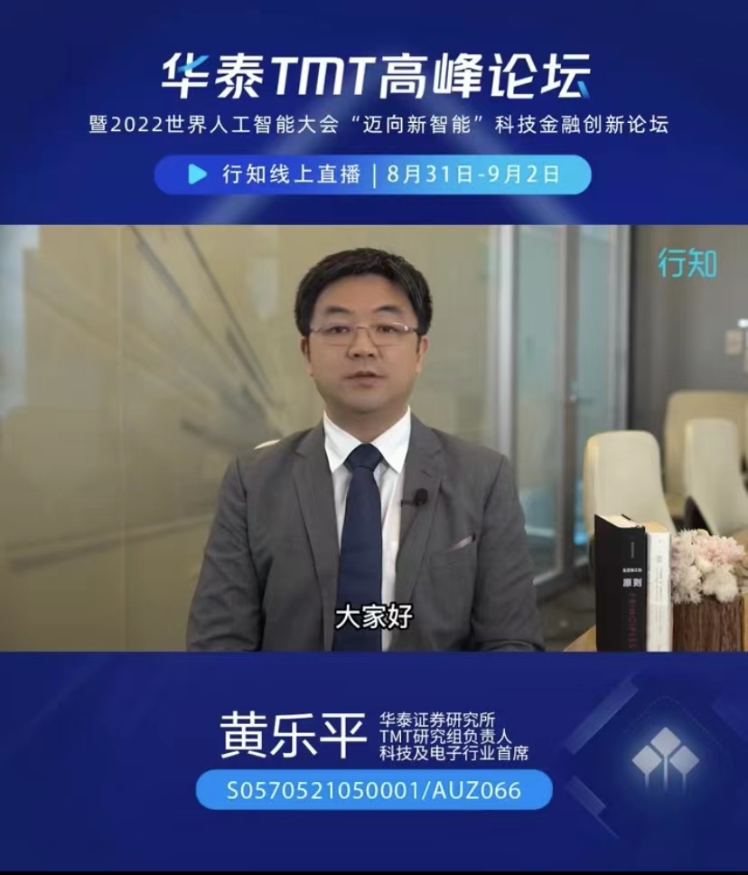 2022年8月31日-9月2日,华泰证券研究所携手华泰联合证券举办TMT高峰论坛暨2022世界人工智能大会科技金融创新论坛。