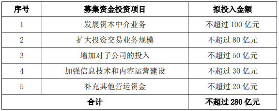二是以不超过80亿元(约占28.57%)用于扩大投资交易业务规模,包括场外衍生品、FICC业务。