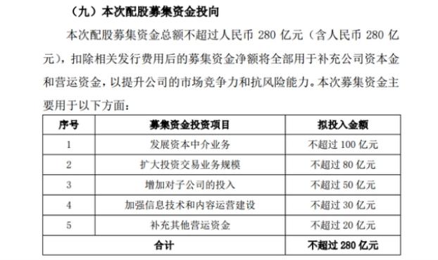 如果这份配股完成,这将是A股券商最大规模的一笔配股融资。
