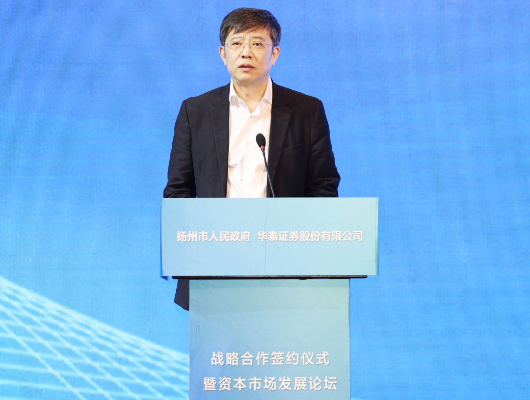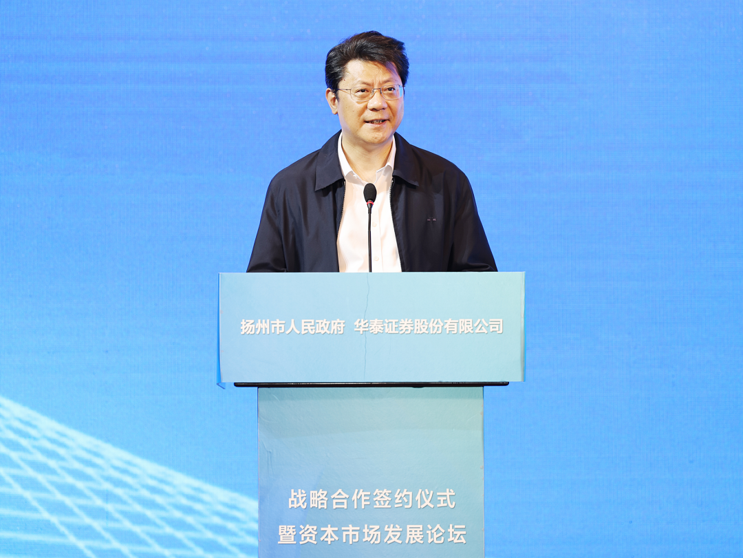 科技成果、创新要素转化为经济发展的优势,离不开金融的有力支持。华泰证券是行业领先的科技驱动型综合证券集团,在业内率先以金融科技助力产业转型发展。多年来,华泰证券与扬州保持着良好的沟通合作关系。此次战略合作协议的签署,标志着双方在企业上市、基金合作、债券发行等方面展开更为紧密的合作。期盼华泰证券充分发挥专业、资金和服务优势,以金融创新赋能扬州科创企业发展,持续做好地方政府投融资顾问,为扬州战略性新兴产业发展提供更多咨询和建议。也真诚希望华泰证券和扬州不断深化合作关系,推介吸引更多优质企业来扬投资,续写双方共赢发展新篇章。