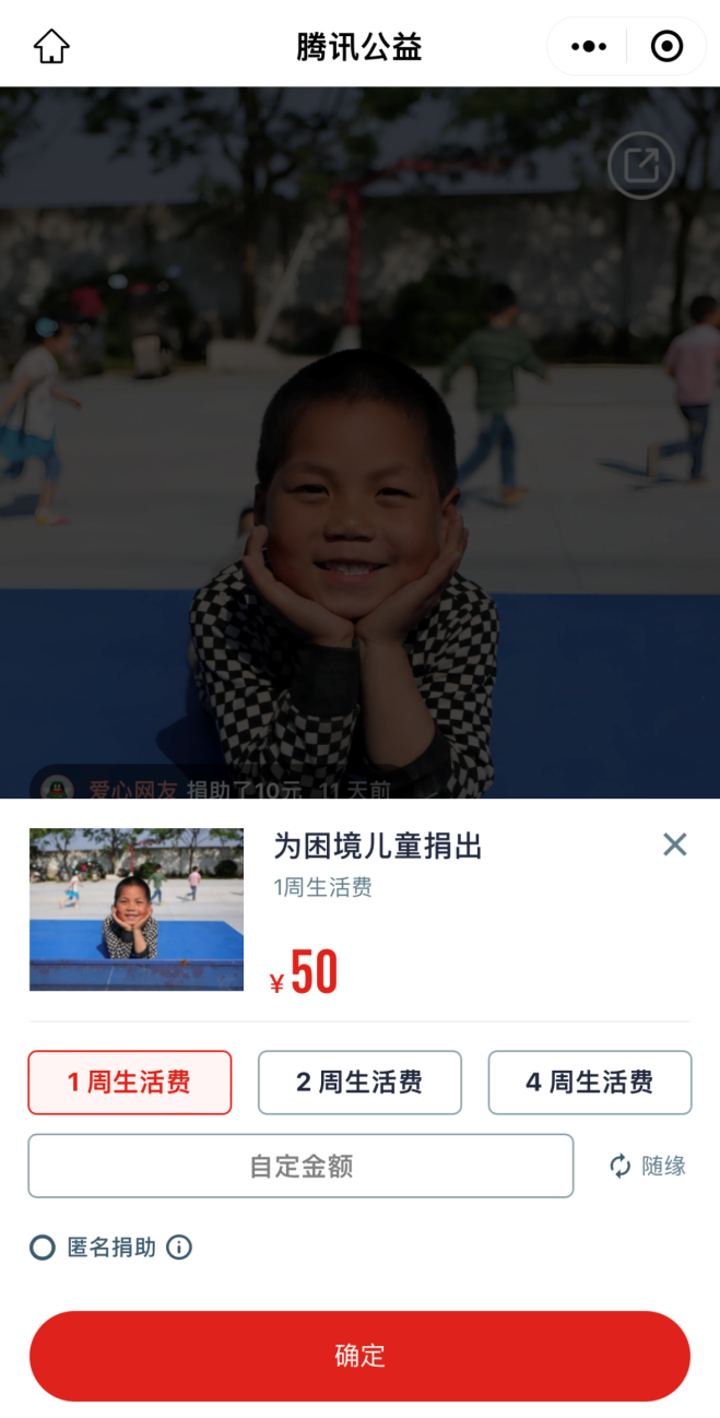 点击“单笔捐款”,选择固定或自定金额捐款